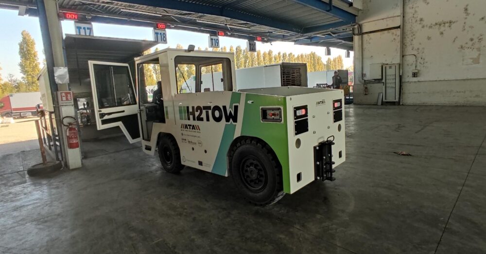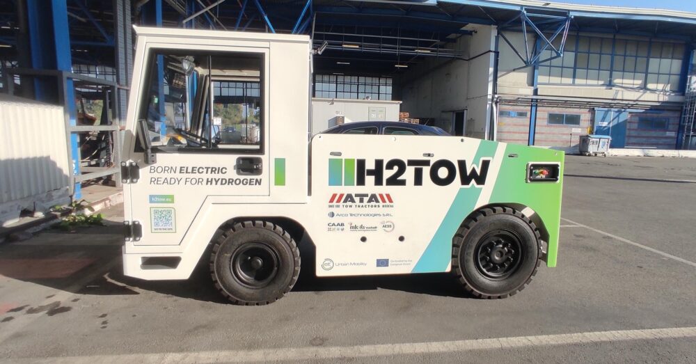 Frutto del progetto europeo finanziato da EIT Urban Mobility, l’H2 Tow Tractor – progettato da ATA, con il sistema di alimentazione progettato e realizzato da Arco Technologies e supportato da AESS – è un prototipo innovativo di trattore elettrico alimentato da celle a combustibile.